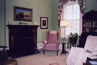 The original coal-burning fireplace, accented by walnut woodwork handcrafted by Riverside’s builder, Leon Clench, is the focal point of the back parlour. Leon’s daughter Nora, a child prodigy who became a concert violinist in Germany and England in the 1890s, was first taught violin by her father, likely in this room.